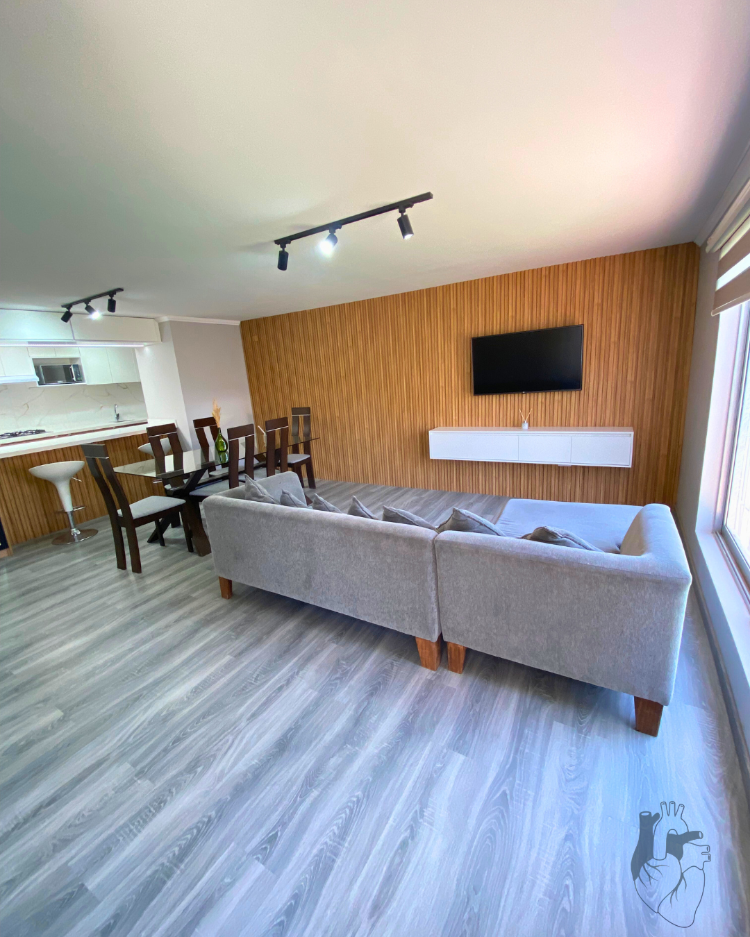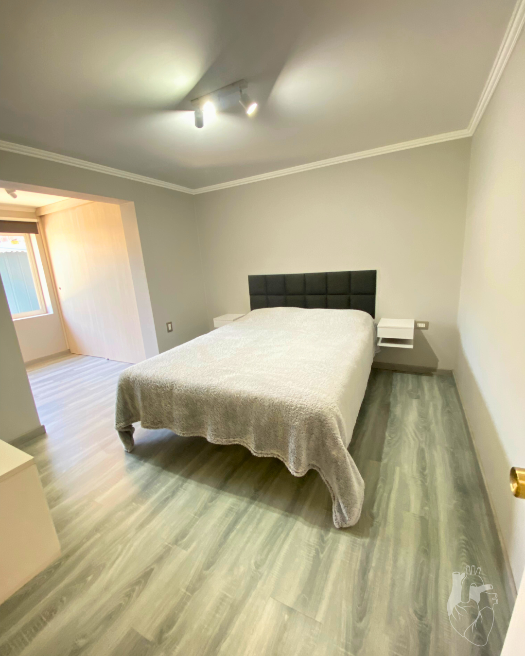 El departamento interior, también remodelado, tiene entrada independiente por el costado de la propiedad y ofrece 2 dormitorios + 1 baño.
